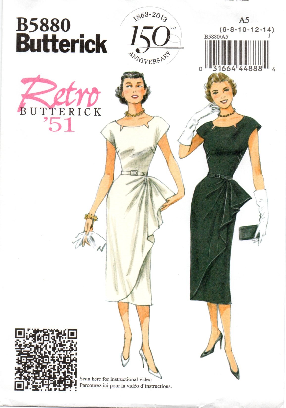 Butterick 5880 Retro 51 Hip Drape Dress Pattern Choose Etsy De